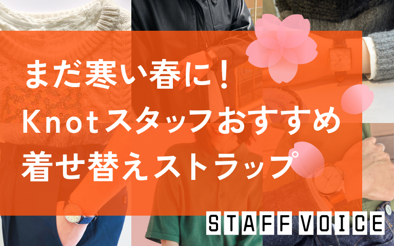 まだまだ寒くて厚手の服も着るけれど、少しずつ暖かい日も増えてきて早く春のコーディネートを取り入れていきたいですよね。本記事では、季節の変わり目にKnotのスタッフがどんなストラップの着せ替えをしている…
