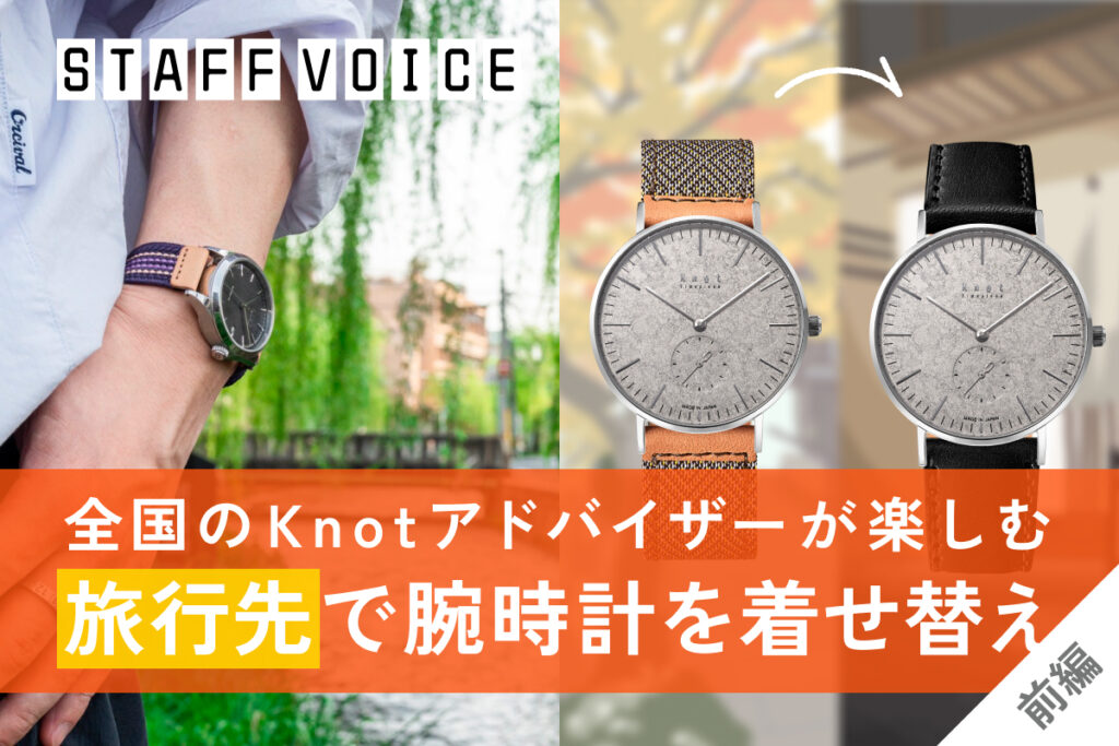 この記事では、全国のMaker’s Watch Knot ギャラリーショップでカスタマイズを案内するアドバイザーが、旅行中にKnotの腕時計をどんな風に楽しんでいるのか、ご紹介します!