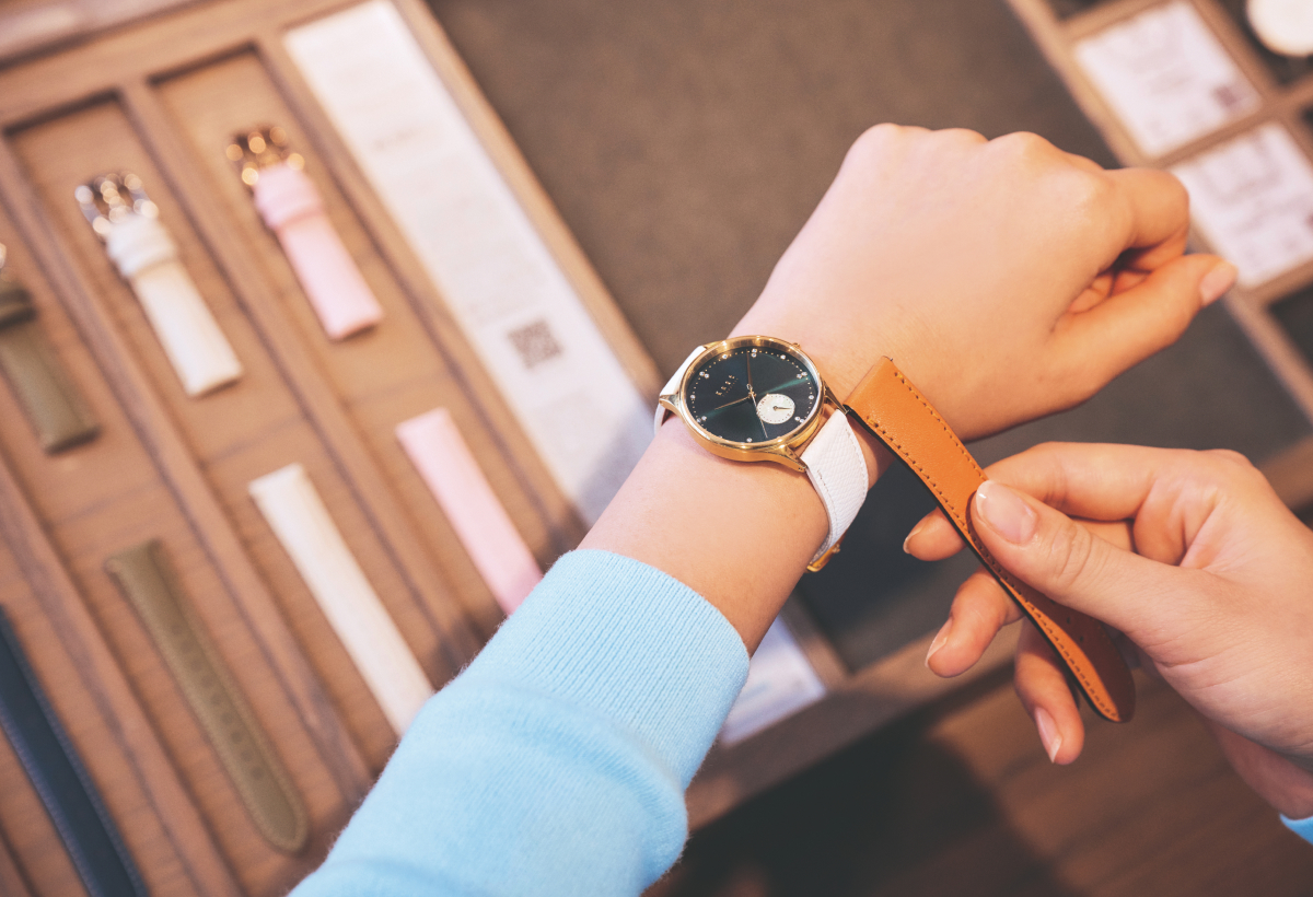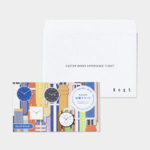 全国のギャラリーショップで使えるカスタムオーダー体験チケットは、選ぶ楽しさも一緒に贈る体験型ギフトです。50種類以上の時計と100種類以上のストラップ*から、お好みの組み合わせを選んでいただけます。