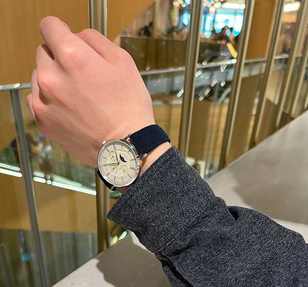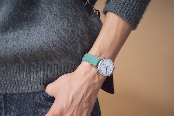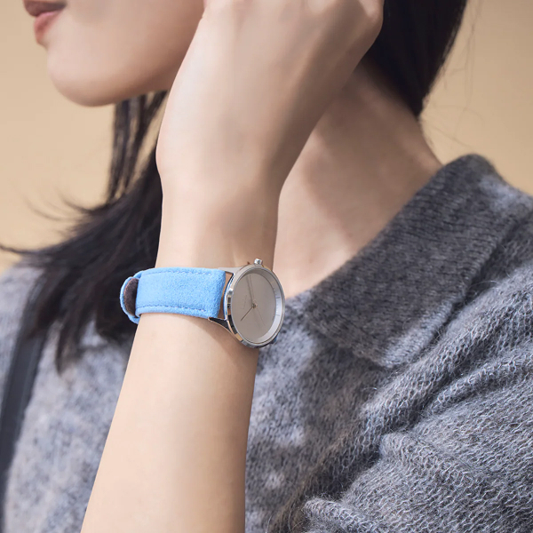 「他のモデルにはない、落ち着いたライトブルーの色合いがとても素敵だと思いました!個人的にはアイボリーの文字板のスクエアとの組み合わせがおすすめです。春先には、トレンチコートや白ニットと合わせることで、柔らかく上品な印象を演出できそうです!」