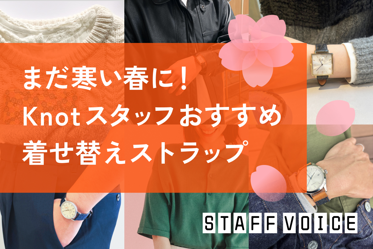 まだまだ寒くて厚手の服も着るけれど、少しずつ暖かい日も増えてきて早く春のコーディネートを取り入れていきたいですよね。本記事では、季節の変わり目にKnotのスタッフがどんなストラップの着せ替えをしているのかご紹介します!